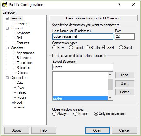 [user@localhost ~]$ ssh jupiter.febras.net -l имя_пользователя
